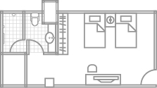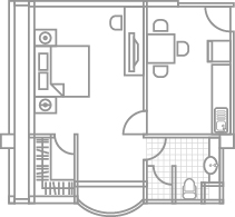 Twin size bed / 1 Bathroom / Television / Wardrobe |